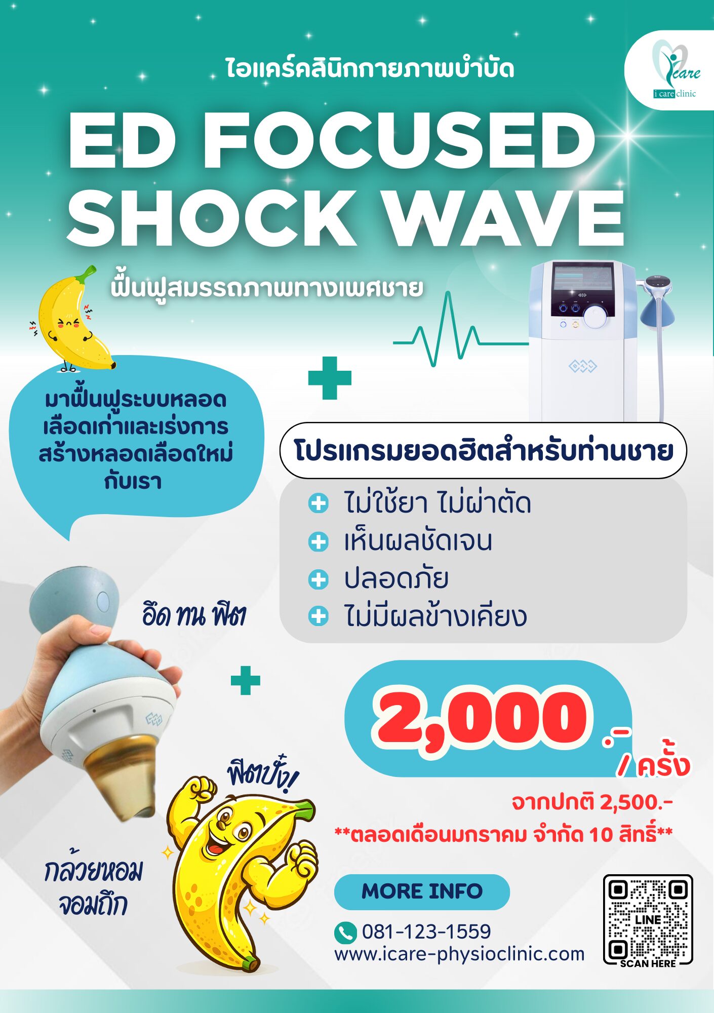 ที่ iCare: ประเมินรายบุคคล + เทคโนโลยีรักษา (เช่น Shockwave/PMS/เลเซอร์) + โปรแกรมบ้านที่ทำได้จริง